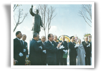 1992년 10월 20일 오두산 통일공원에서 제막된 조만식의 두번째 동상(김영삼 전 대통령과 부인 전선애 여…
