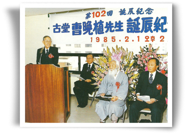 1985년 탄신기념 경모모임 (한경직(韓景職) 당시 고당기념사업회 이사장이 인사말을, 함석헌(咸錫憲)옹이 추모 강연) 목록 페이지 정보 본문 이전글1992년 10월 20일 오두산 통일공원에서 제막된 조만식의 두번째 동상(김영삼 전 대통령과 부인 전선애 여사) 26.03.04 다음글결혼식에 주례로 참석한 고당 조만식 선생 26.02.20