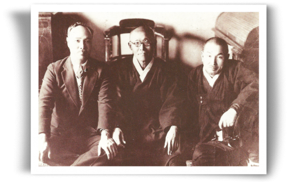 1935년 도산 안창호가 출옥한 후 함께  찍은 사진(좌 몽양 여운형, 중 도산 안창호, 우 고당선생)