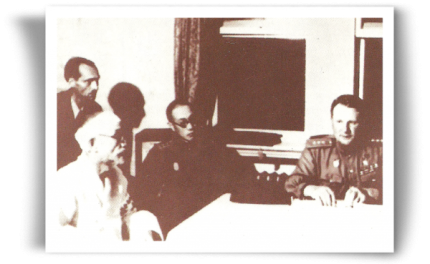 1945년 8월 평양에서 일본군 항복시에 참석한 고당(왼쪽)