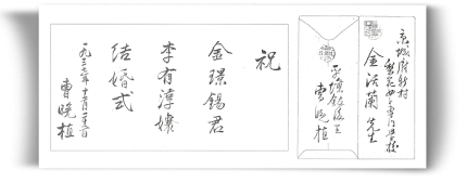 1937년 김경석 씨와 이유순 양의 결혼 때 이화여전 김활란 씨를 통해 보낸 축하 서한